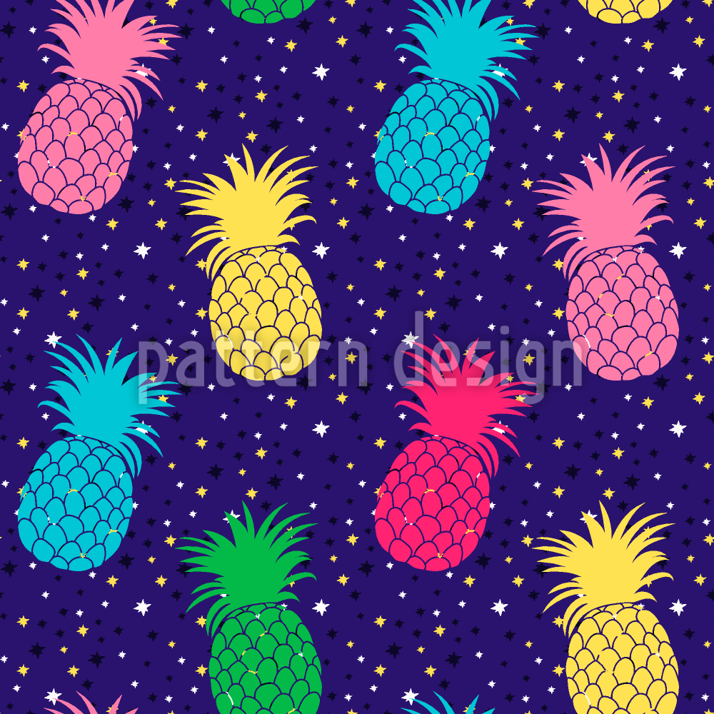 | Beskrivelse | Sømløst mønster med ananas, der flyver i stjernehimmel. | ||