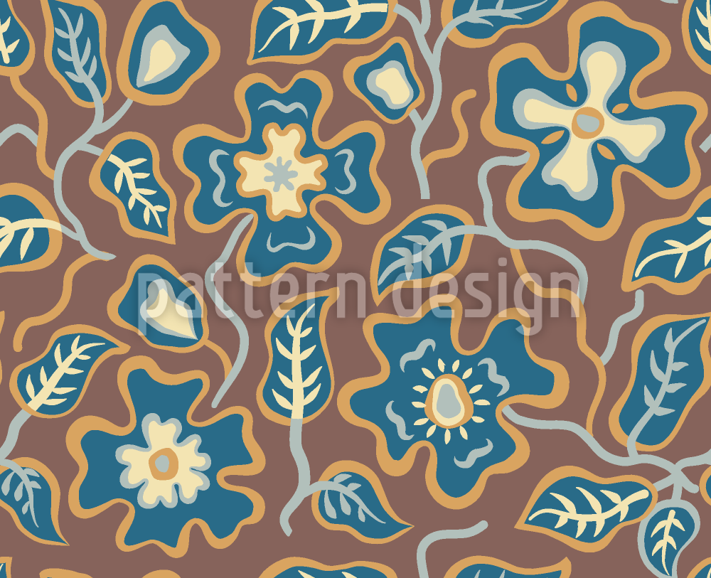 | Beskrivelse | Diskrete blomster, blader og stilker vokser i blå farger på brun bakgrunn. | ||