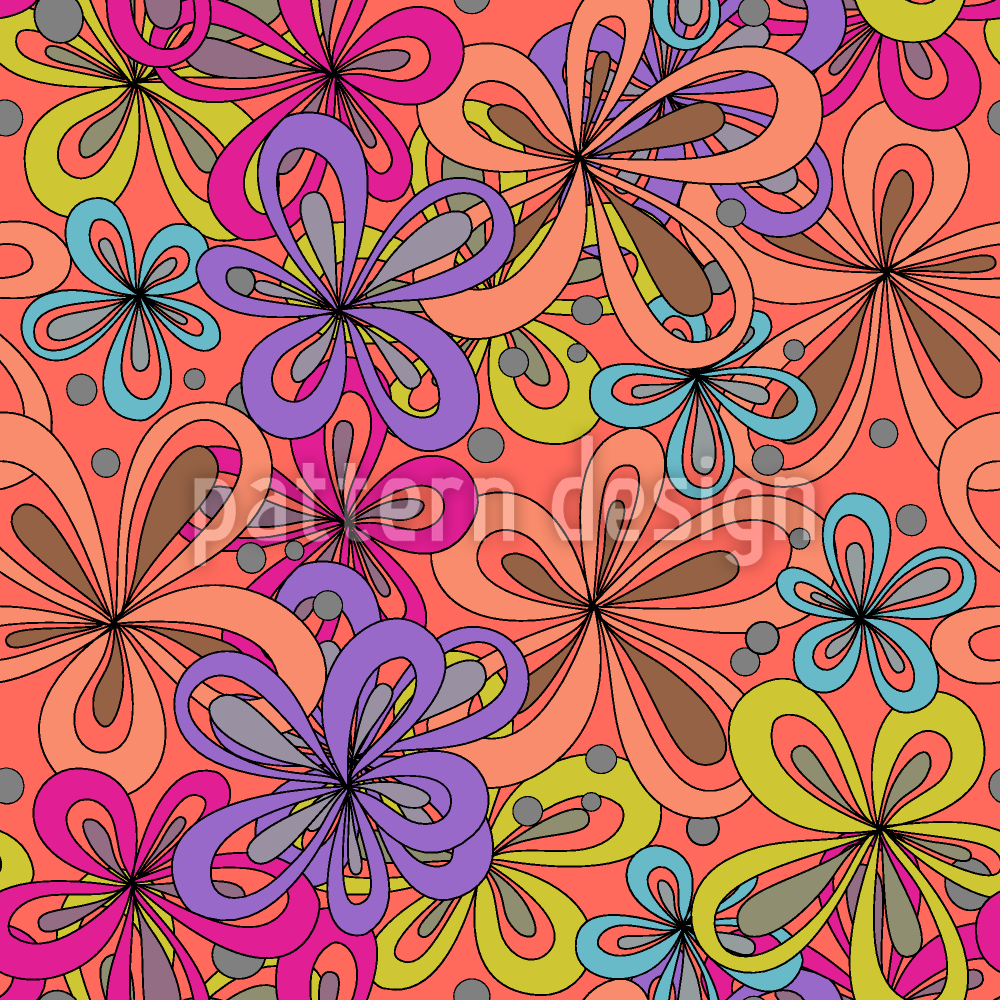 | Beskrivelse | Levende blomstermønster med stiliserte håndtegnede blomster i et kaotisk og energisk arrangement som kanaliserer distinkt psykedelisk estetikk fra 1960- og 70-tallet. | ||