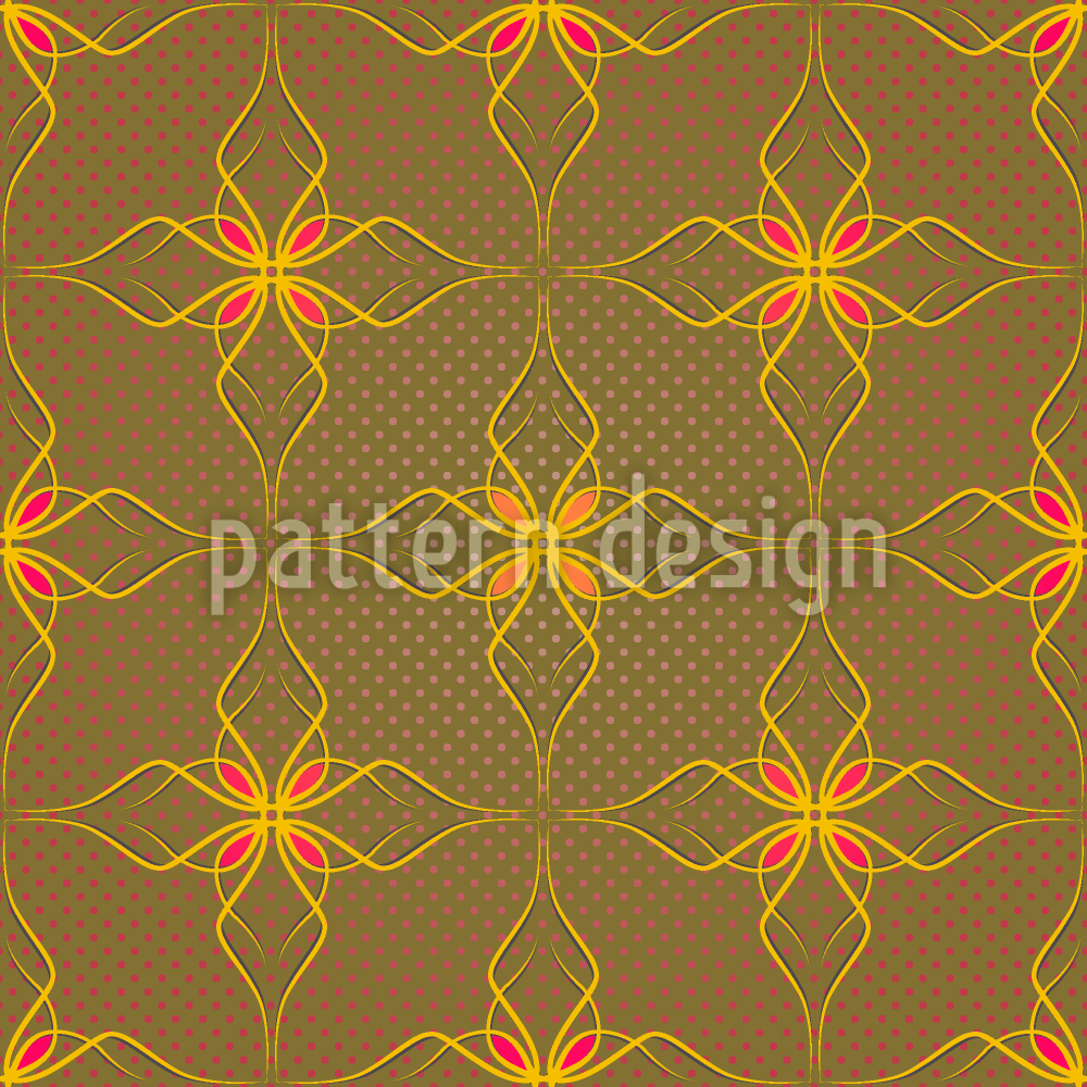 | Beskrivelse | Enestående! Filigran blomst ornamenter på en polka dot bakgrunn. | ||