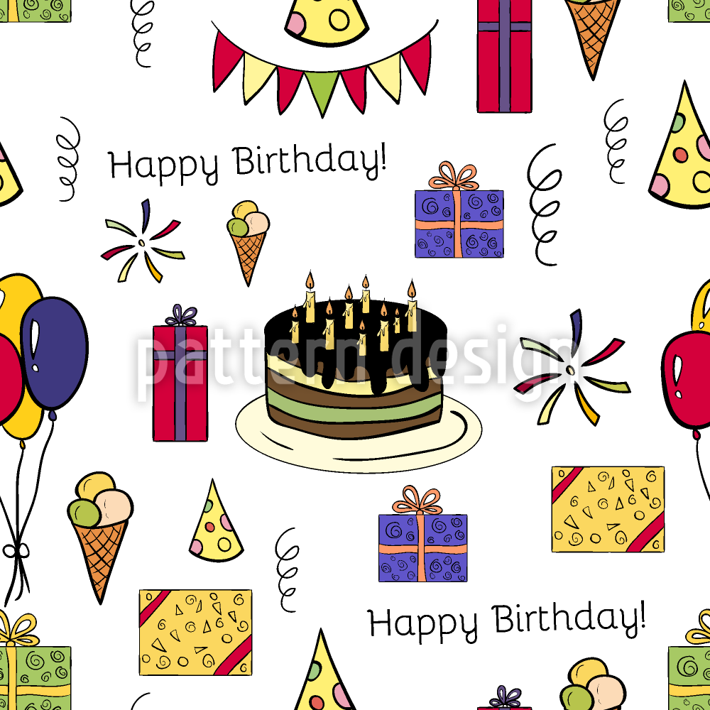| Beskrivelse | Repeterende mønster med alle de tingene du trenger for en bursdagsfest. | ||
