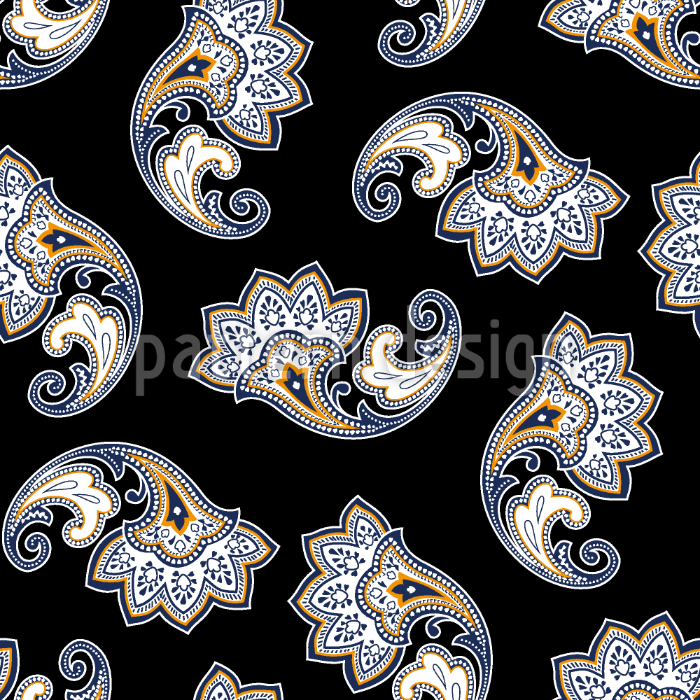 | Opis | Wzornictwo z ozdobami Paisley na ciemnym tle. | ||
