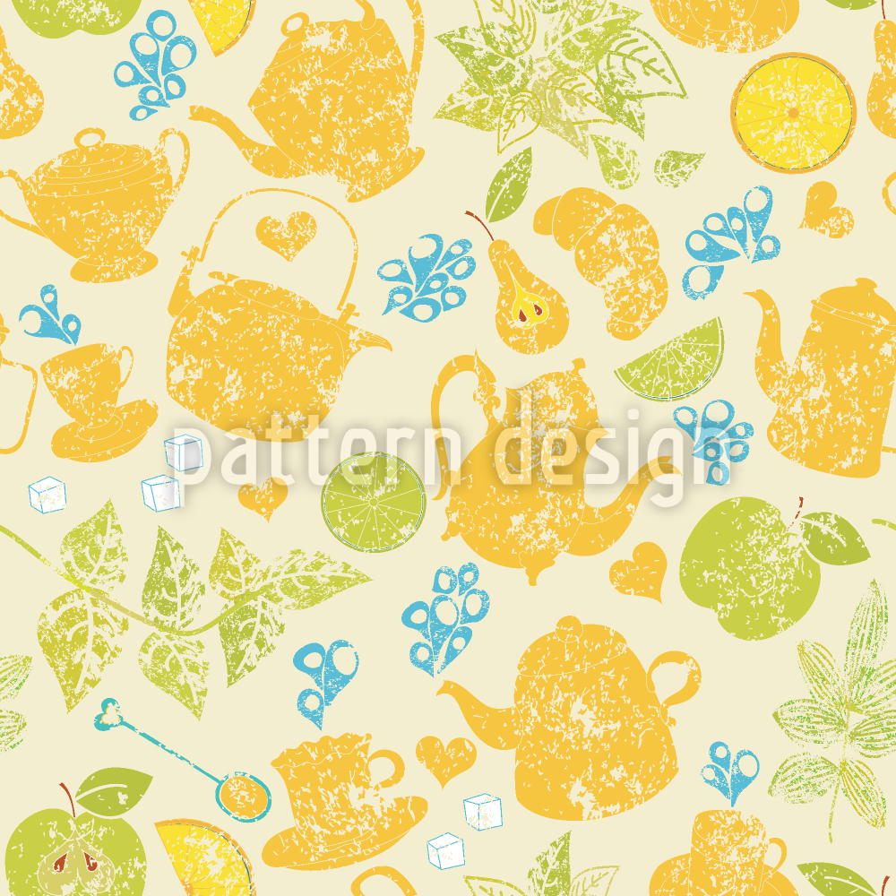 Czas na herbatę w ogrodzie bezszwowy wzór wektorowy.