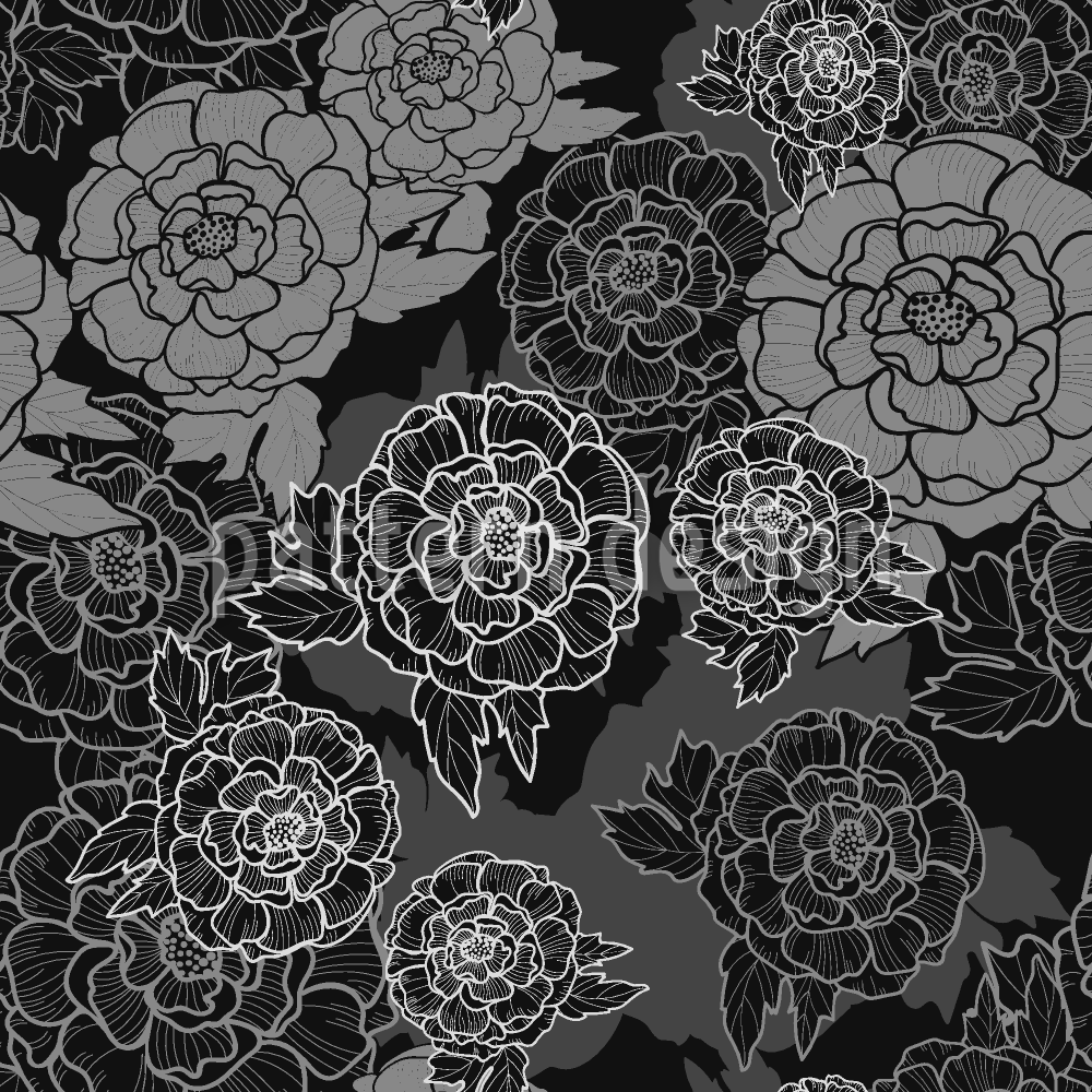 Piwonie w nocnym ogrodzie bezszwowy wzór wektorowy.