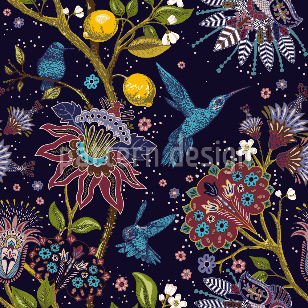 Fantastyczny ogród z ptakami bezszwowy wzór wektorowy.
