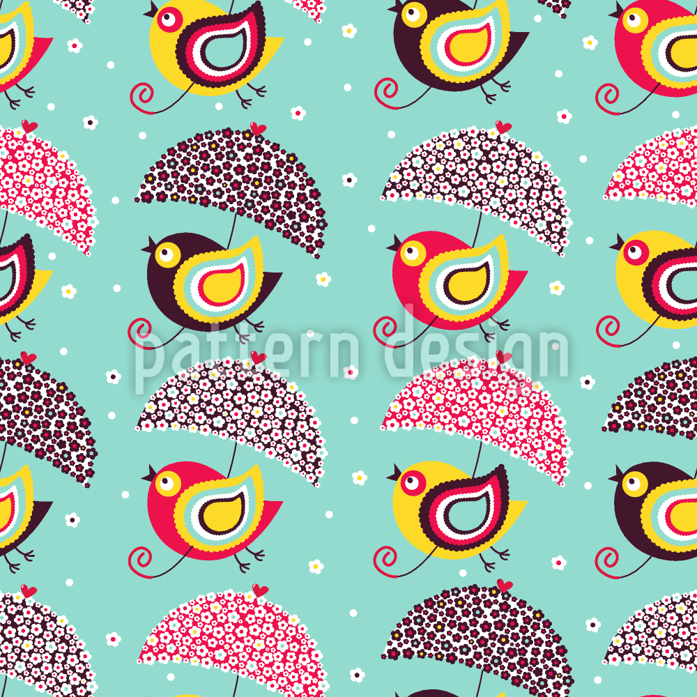 Ptaki z kwiatowymi parasolami bezszwowy wzór wektorowy.