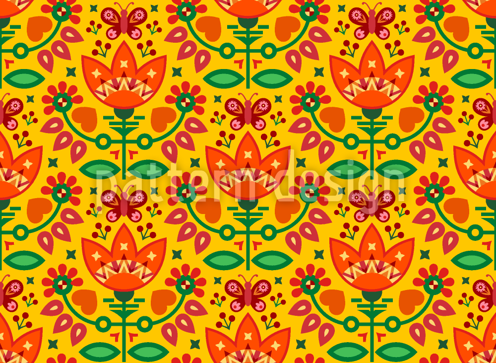 | Opis | Stylizowane kwiaty sztuki ludowej liście z sercami i motylami oraz innymi elementami natury w stylu skandynawskim | ||