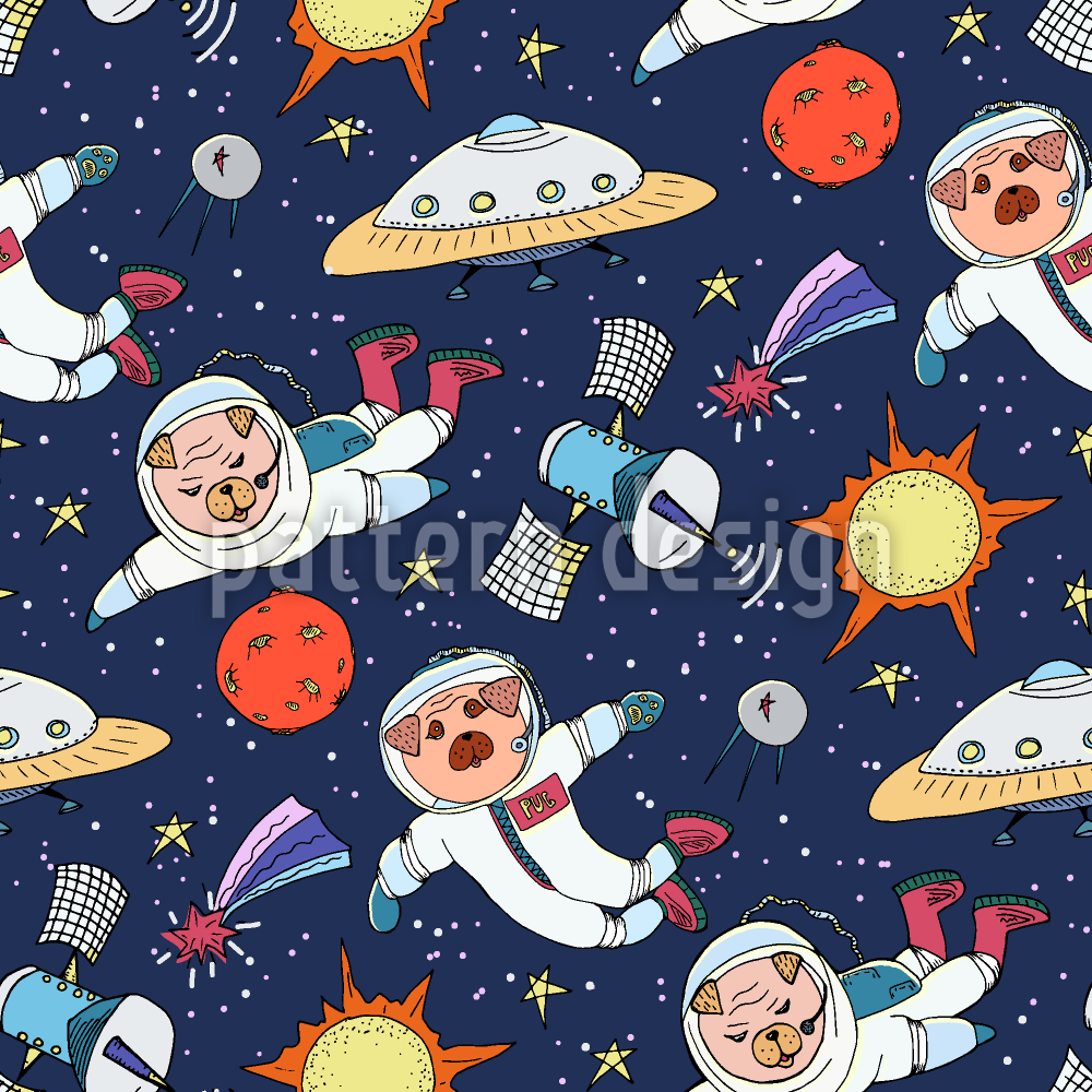 | Opis | Bezproblemowy wzór wektorowy z mopsami jako astronautami otoczonymi satelitami, gwiazdami, UFO i planetami. | ||