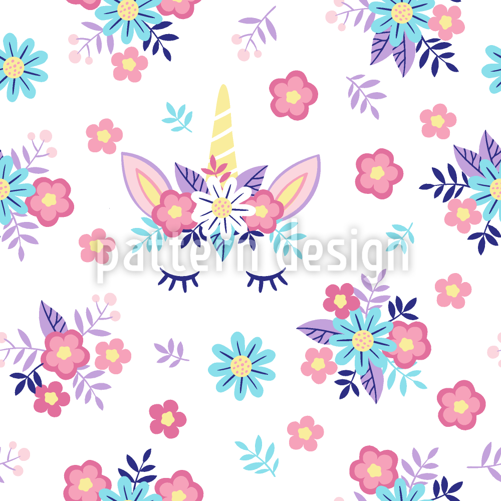 Jednorożec W Kwiatowym Wiencu bezszwowy wzór wektorowy.