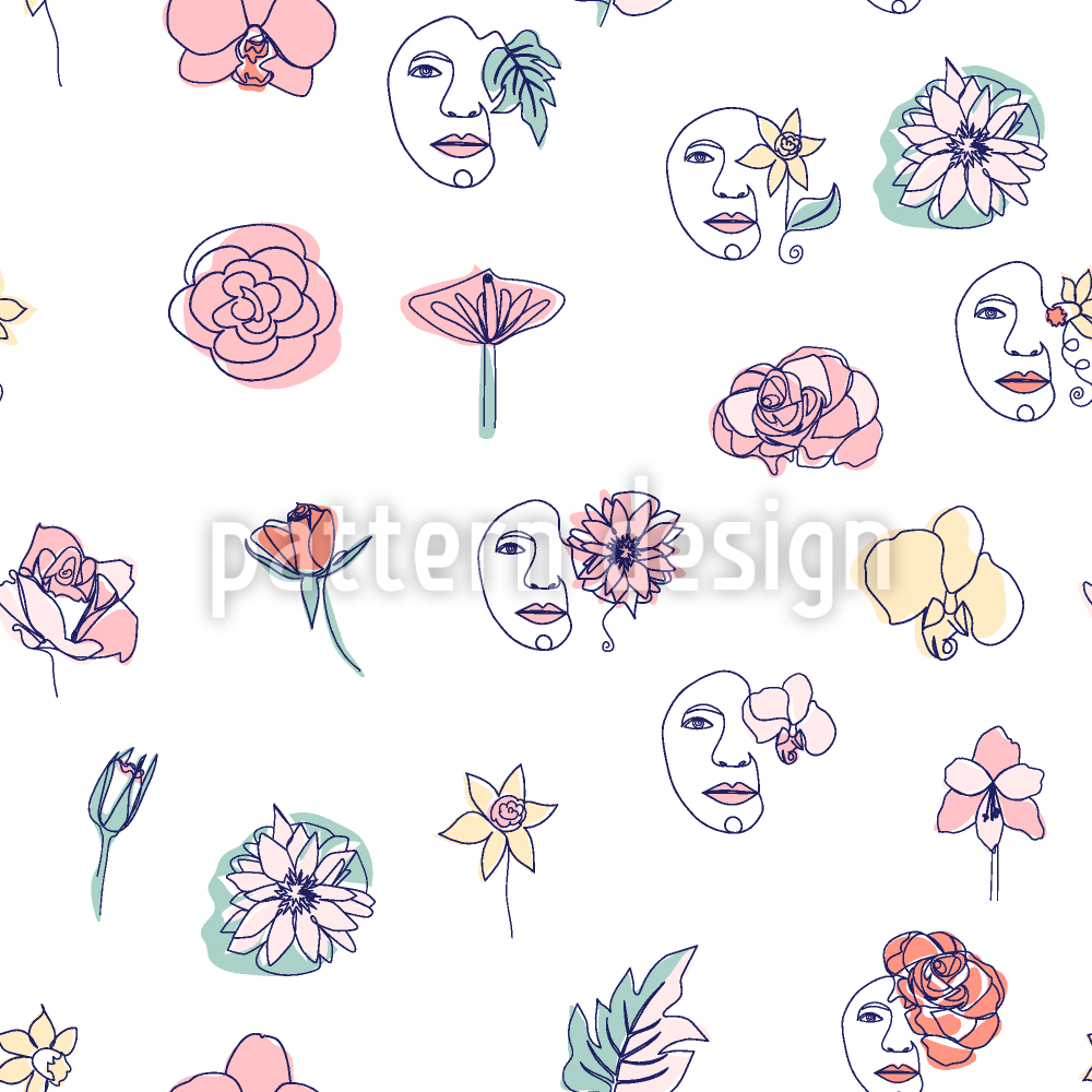 | Opis | Wzór Line Art z kobiecymi twarzami i kwiatowymi elementami w stylu ciągłej linii. | ||