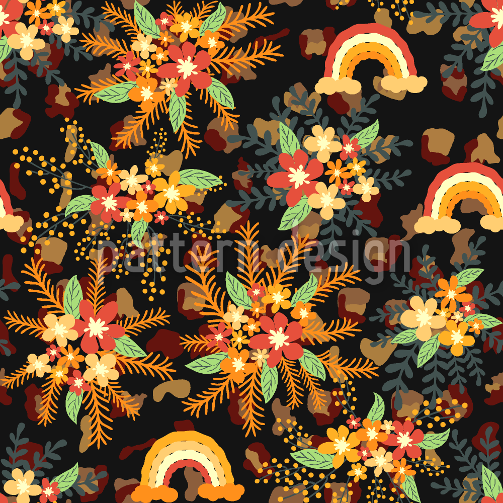| Opis | Bujne, tętniące życiem święto piękna natury, przedstawione kwiatami i tęczami. | ||