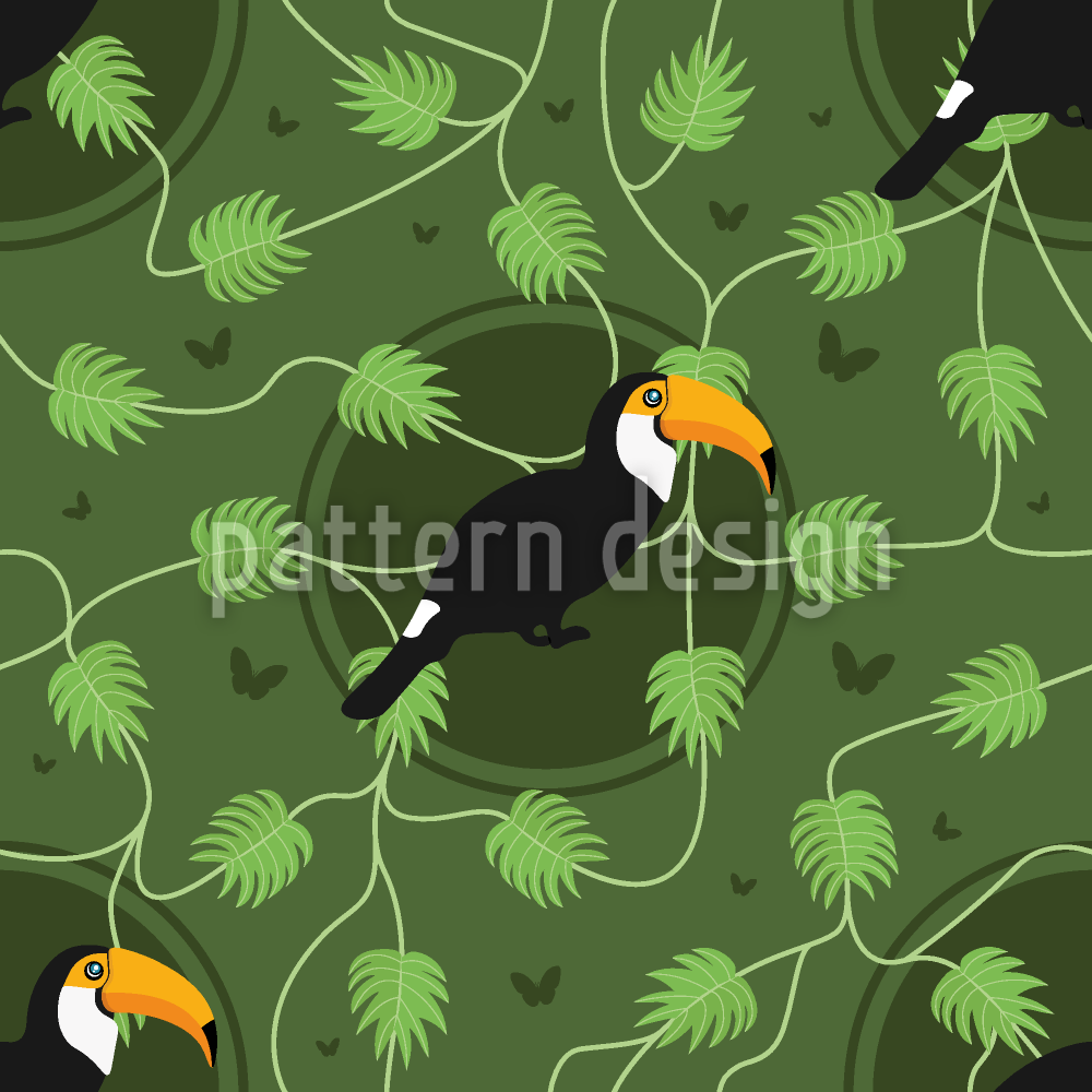| Opis | Tropikalny wzór z tukanem otoczonym ciemnymi sylwetkami motyla i bujnymi tropikalnymi liśćmi. | ||