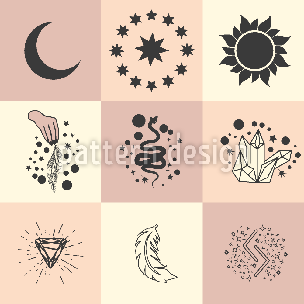 Conjunto de símbolos mágicos Design de padrão vetorial sem costura