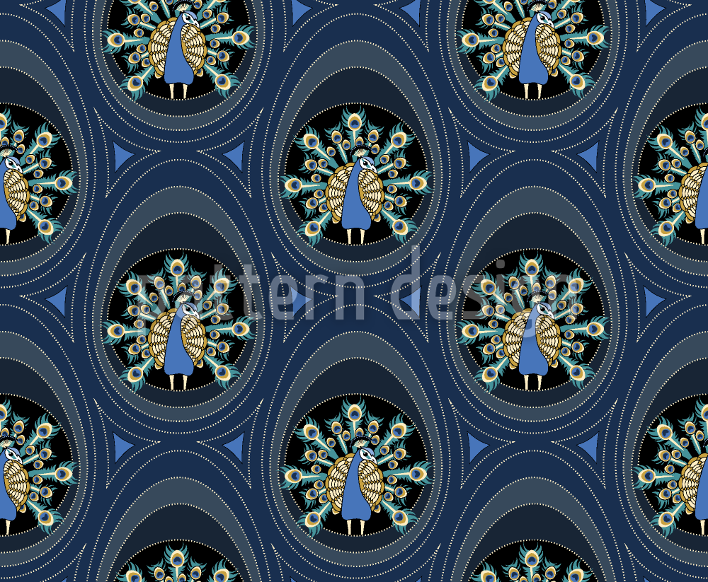 | Descrição | Padrão decorativo Art Deco com motivo de pavão e ornamentos abstratos | ||