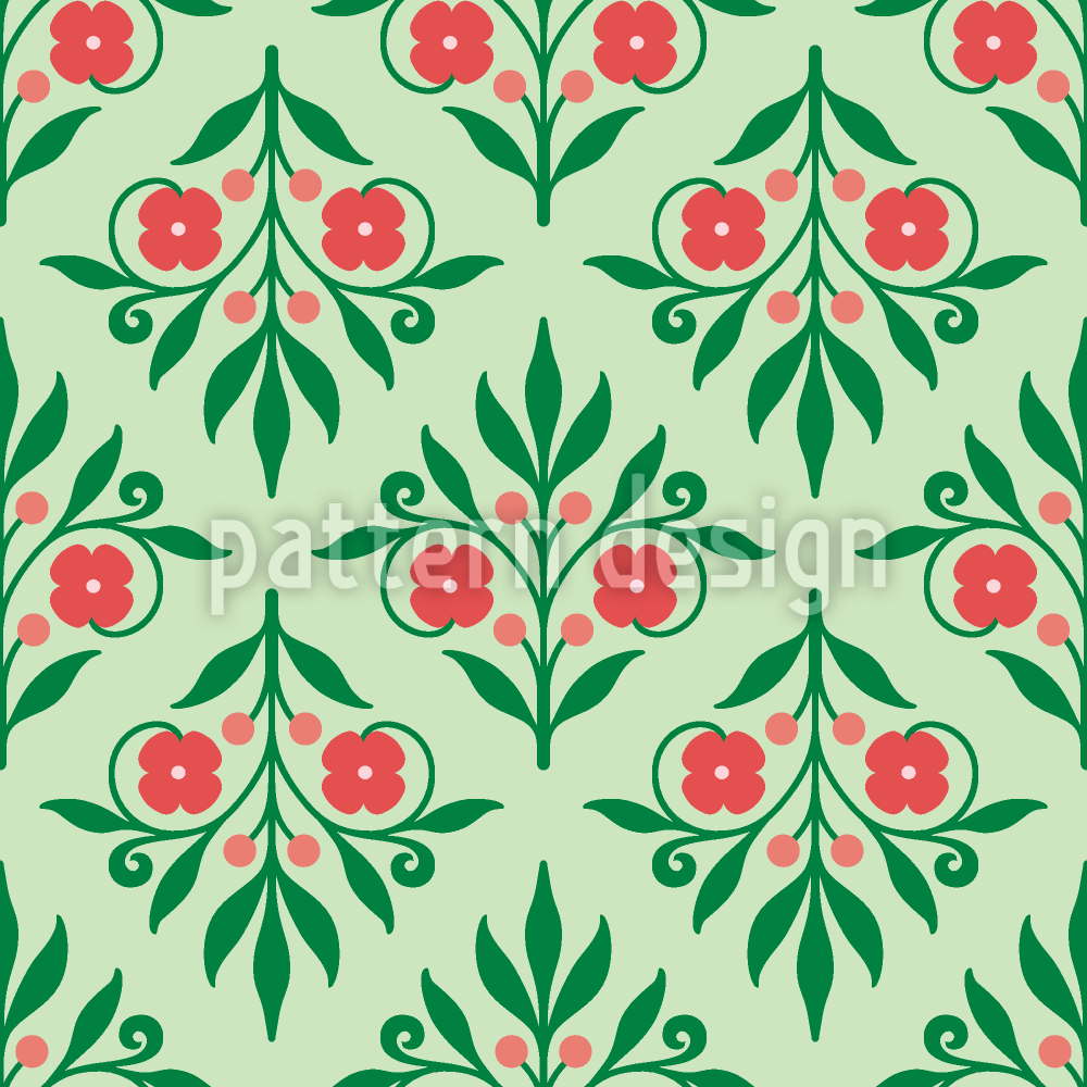 | Descrição | Um padrão de flores vermelhas com folhas verdes em um fundo verde claro | ||