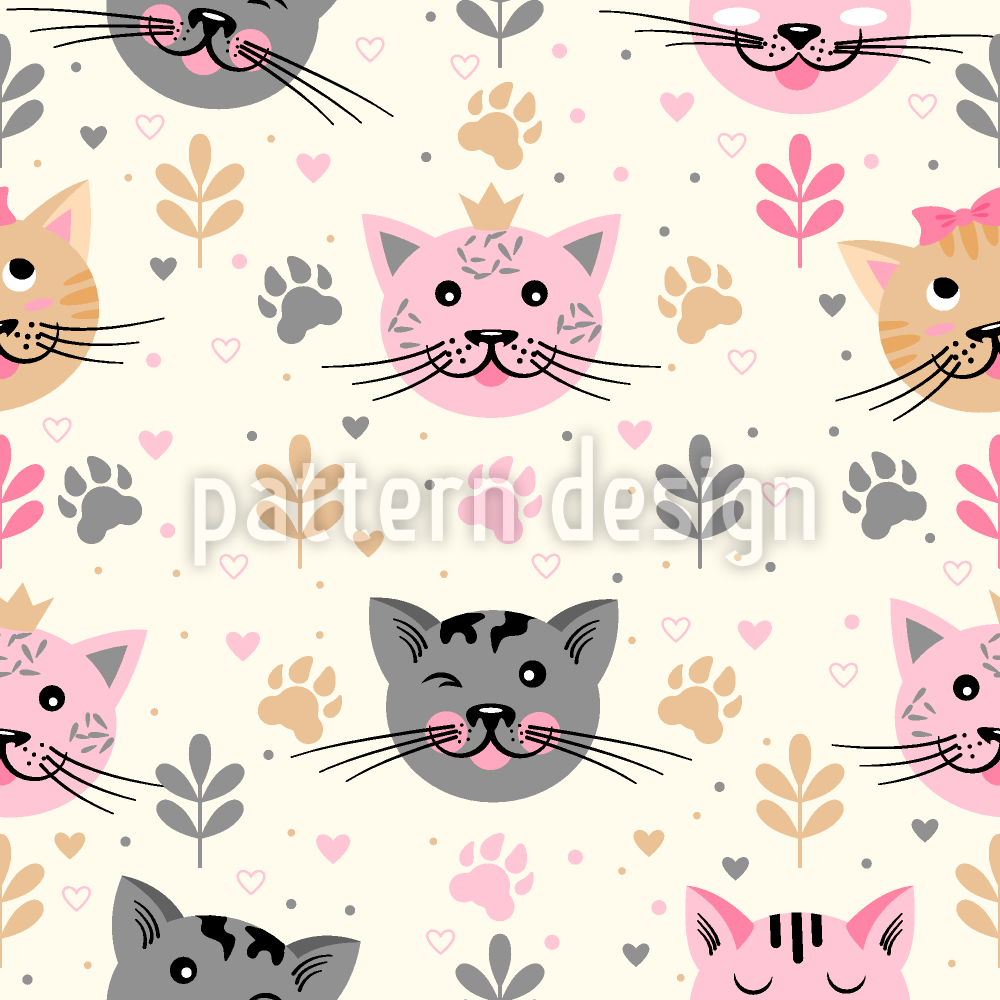 | Descrição | Padrão vetorial sem costura com gatos fofos, impressões de patas e corações. | ||