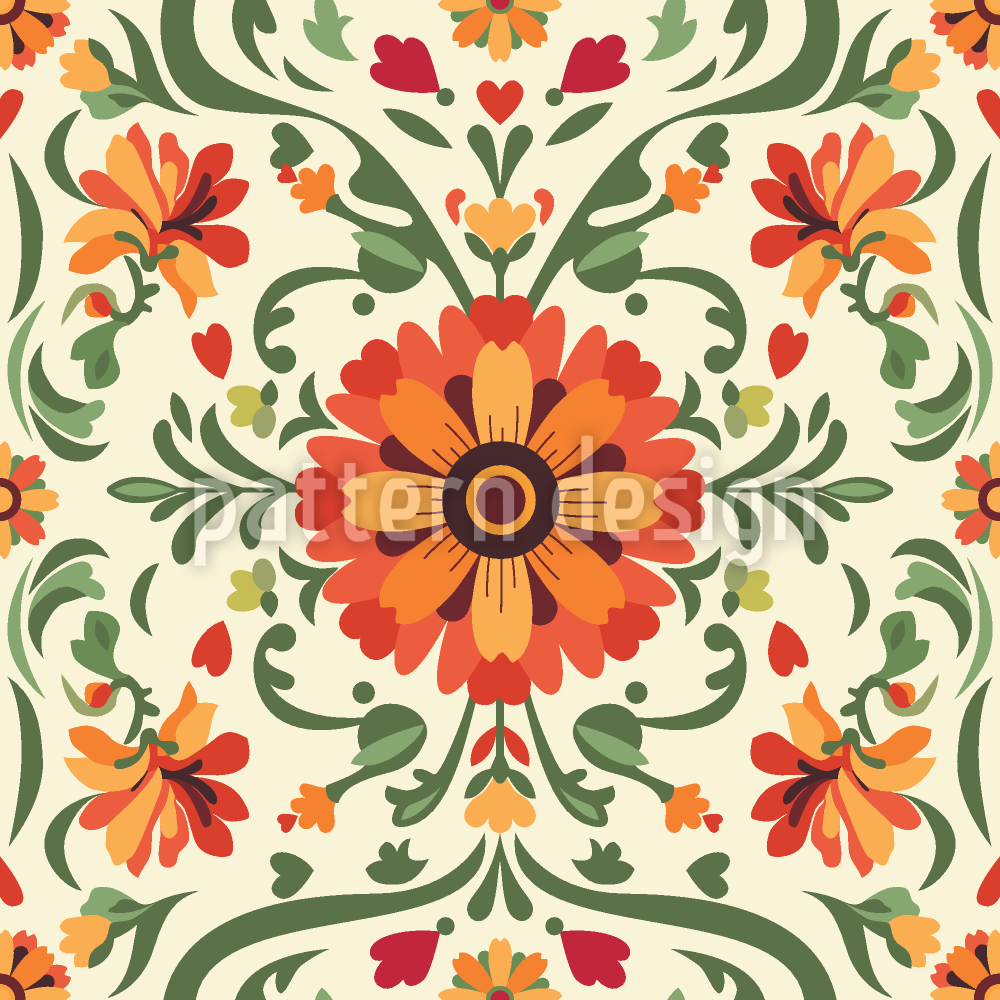 | Descrição | Padrão floral ornamental de flores e videiras organizado em um design de azulejos vintage. | ||