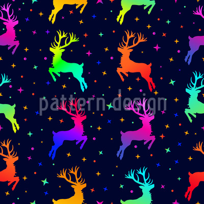 Descrição | Padrão festivo com veados pulando em cores brilhantes de néon. | ||