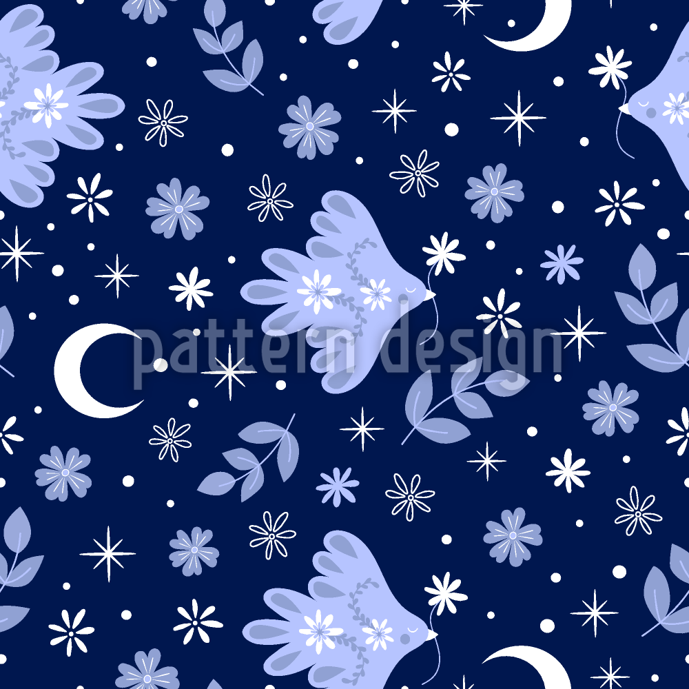 | Descrição | Padrão mágico sem costura com pombas, flores, luas crescentes, estrelas e folhagens, criando uma atmosfera pacífica. | ||
