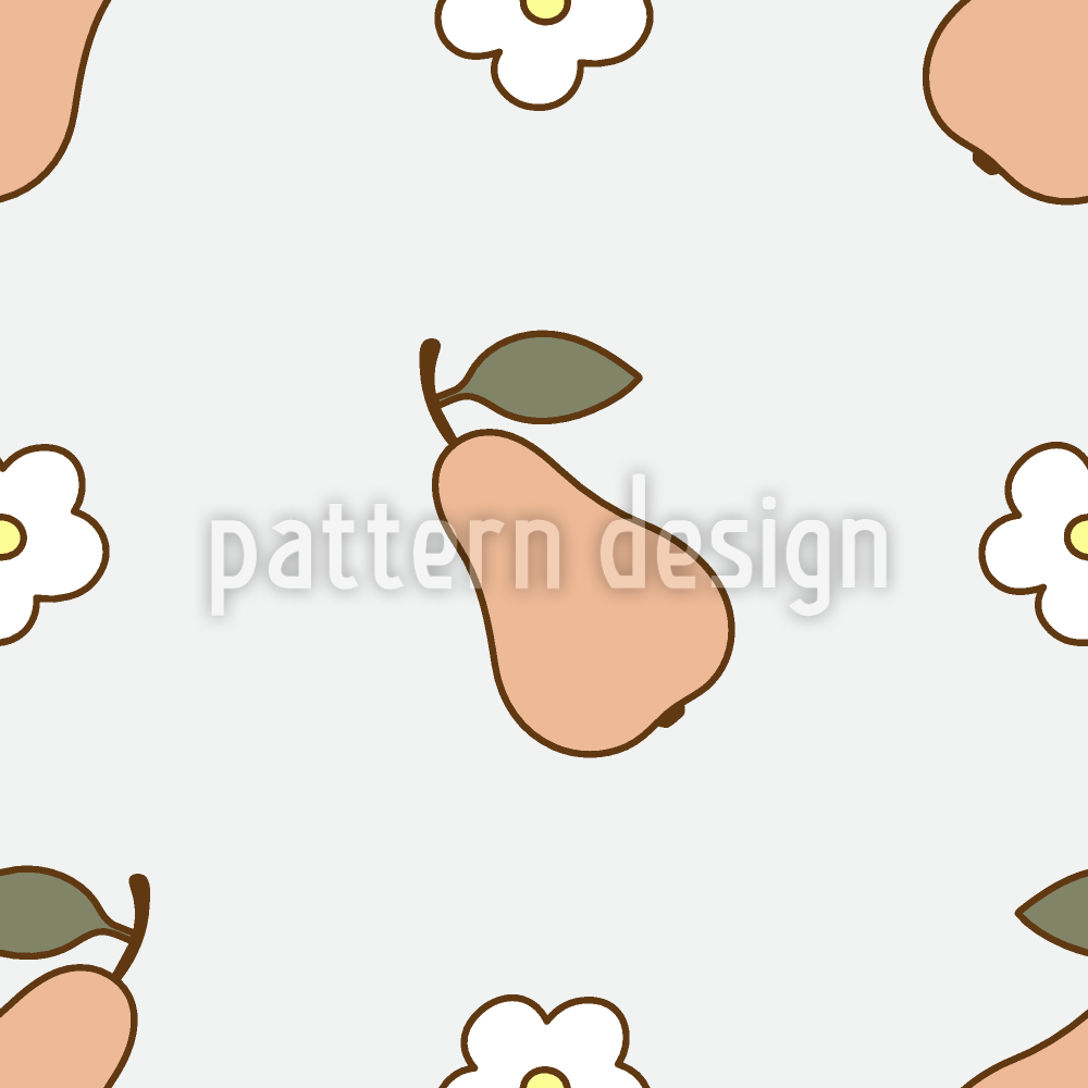 | Descrição | Um padrão de pêra suave com ilustrações simples de frutas e detalhes florais. | ||