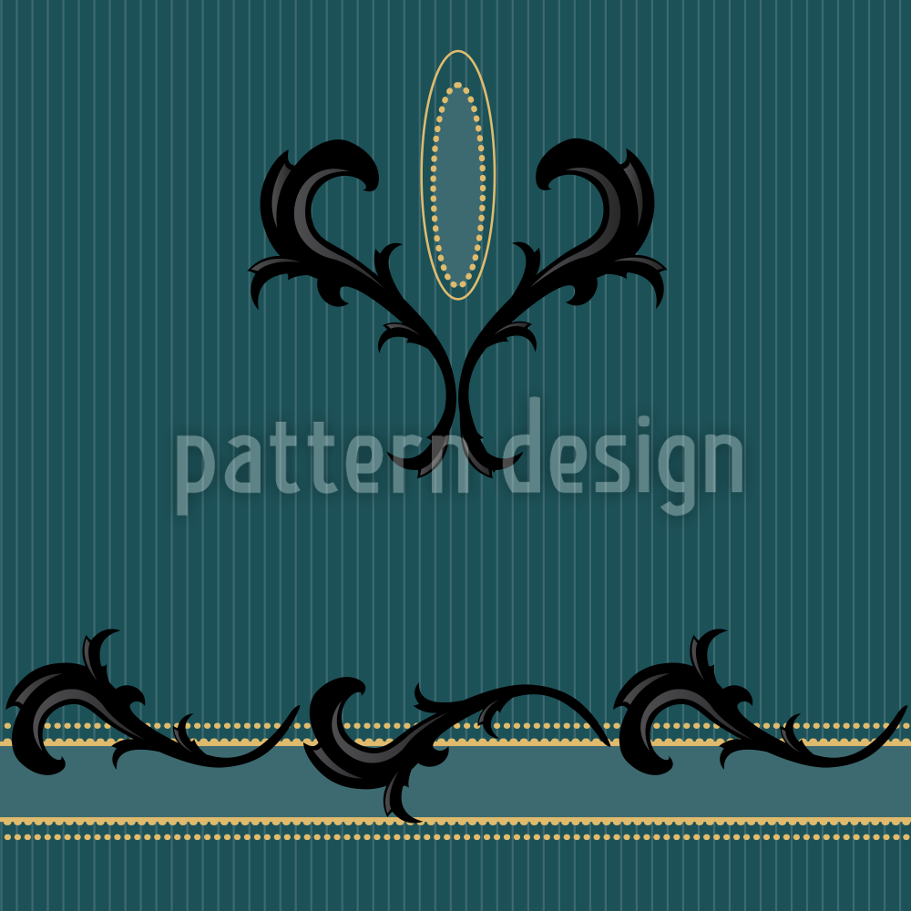 | Descrição | Design Biedermeier com pergaminhos pretos sobre fundo listrado discreto e colorido azul-petróleo. | ||