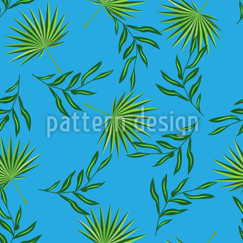 Тропические листья под голубым небом Бесшовный дизайн векторных узоров