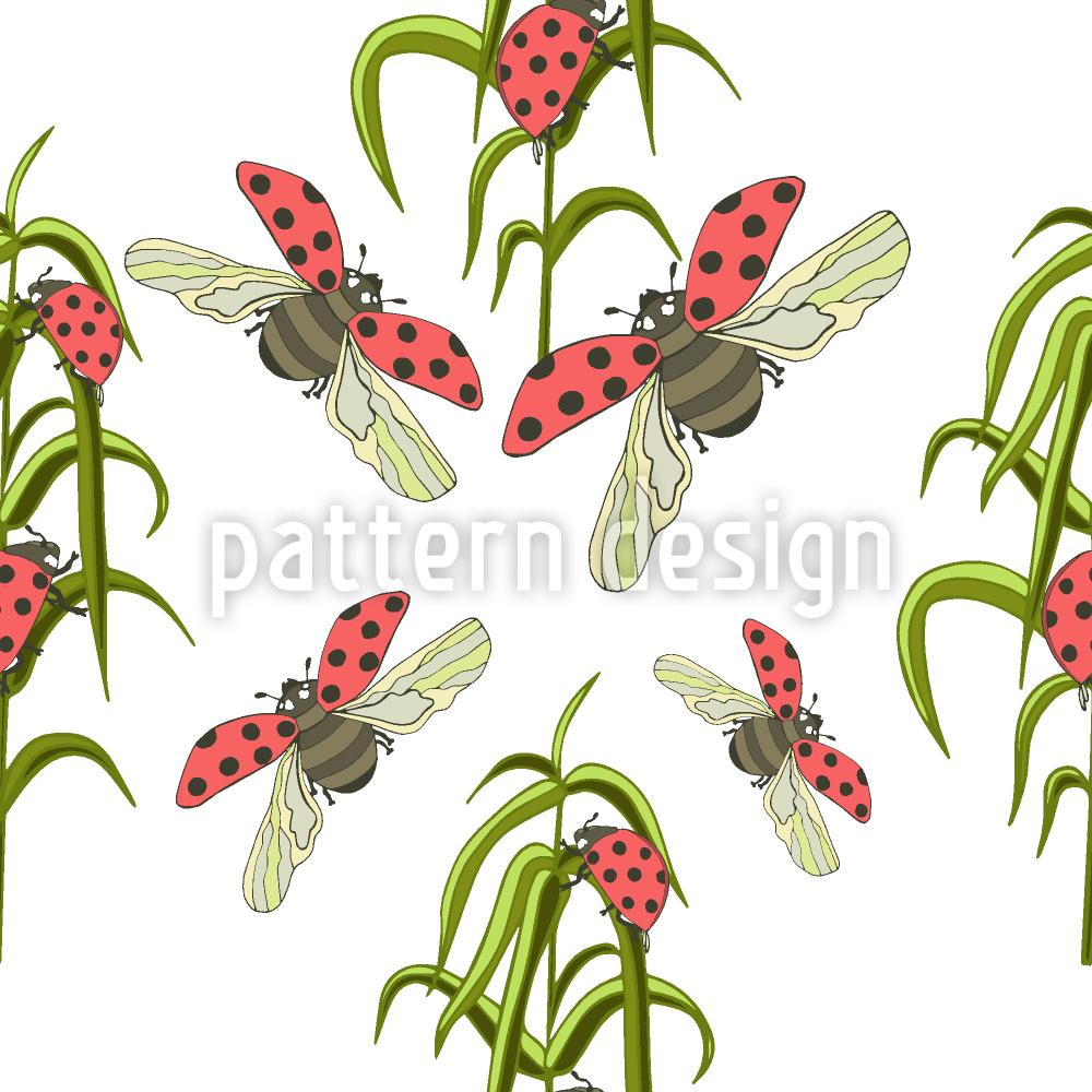 | Описание | Узор со стилизованными летающими и ползающими божьими коровками. | ||