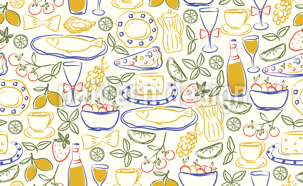 Эскиз итальянской кухни Бесшовный дизайн векторных узоров