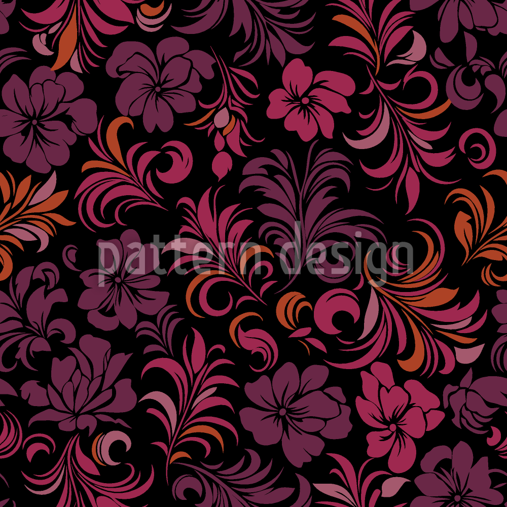 | Описание | Цветочный узор, цветущий на темном фоне. | ||