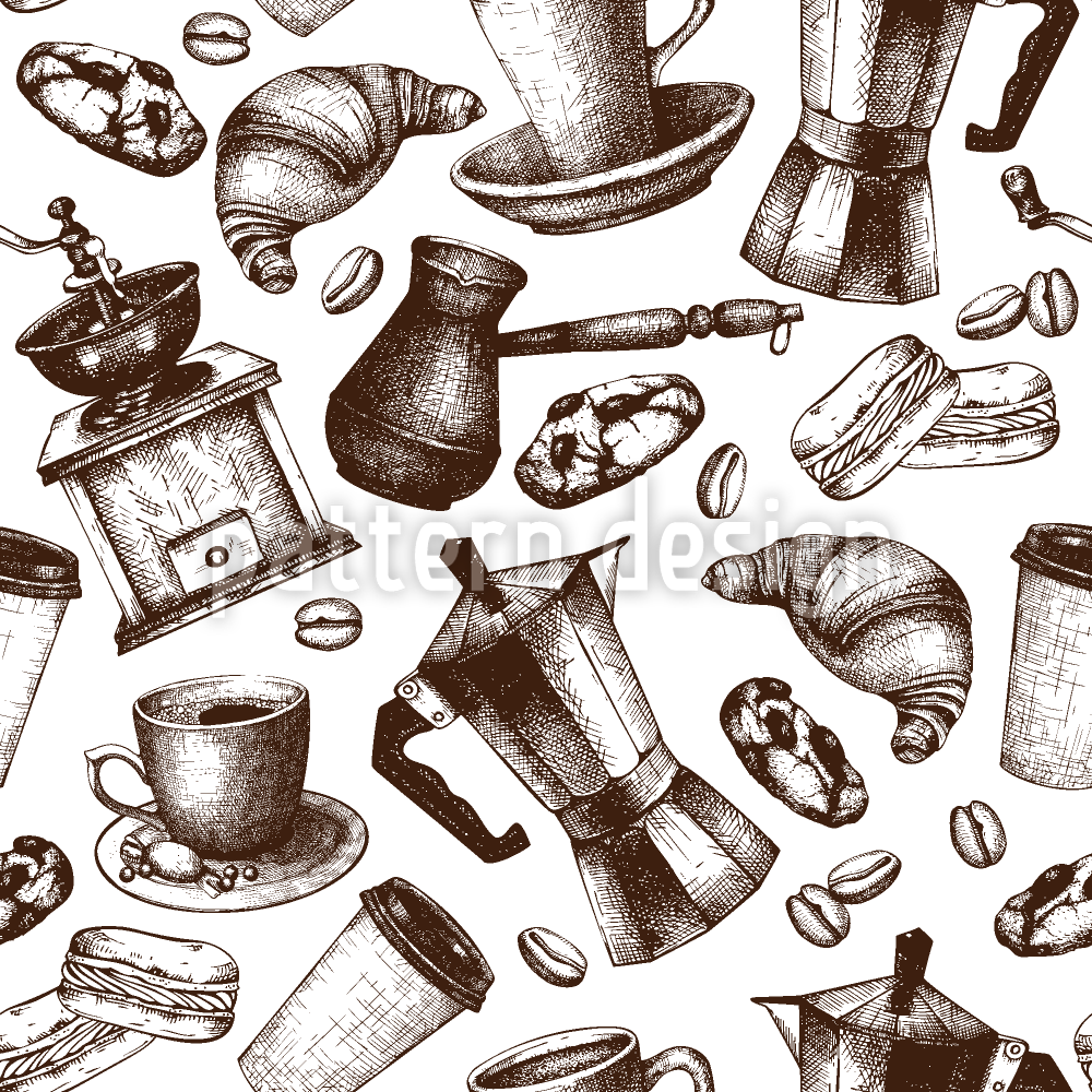 | Beskrivning | Sömlöst mönster med handritat kaffe och desserter. | ||