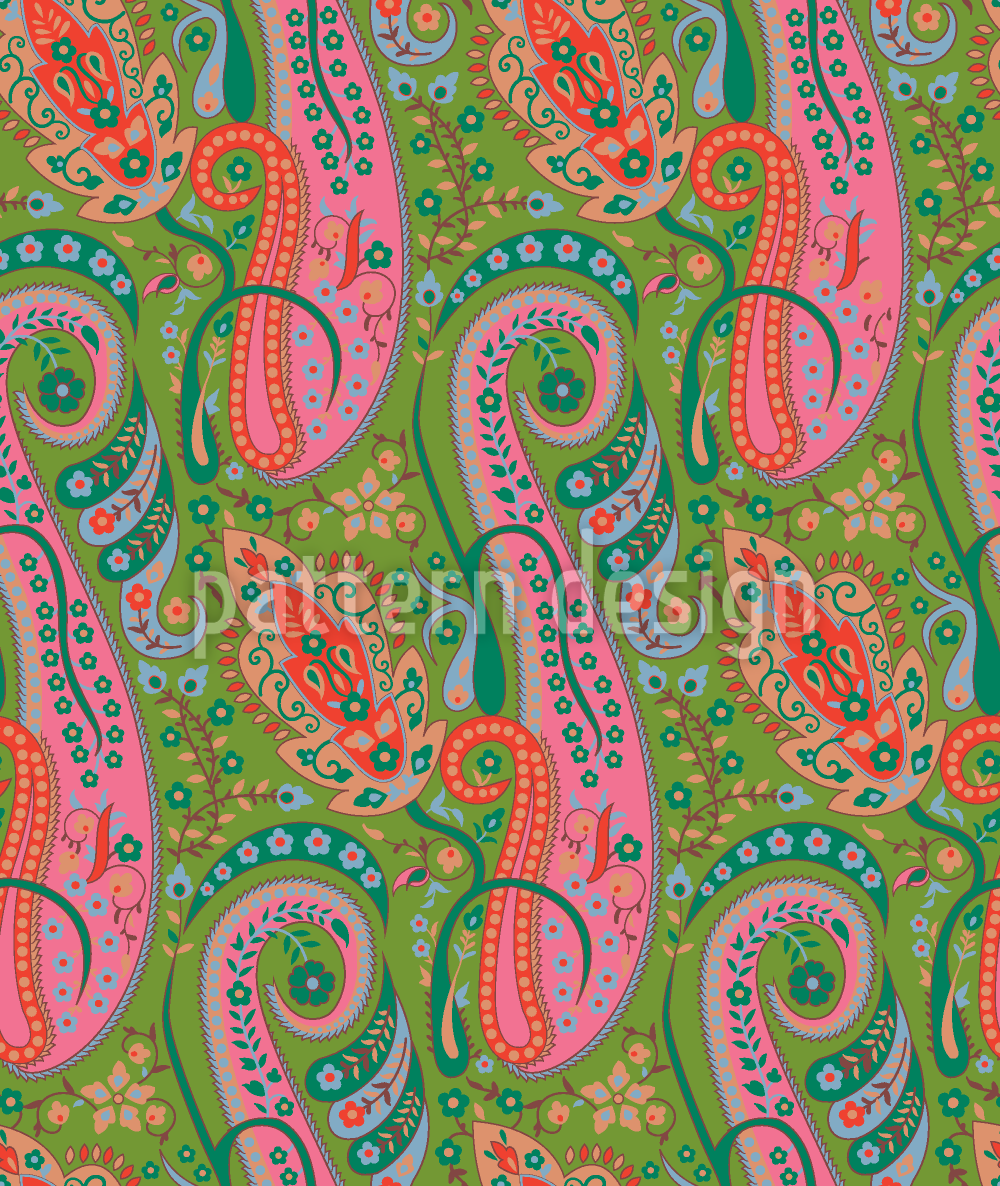| Beskrivning | Denna bedårande orientalisk design visar en rik dekorerad paisley inredning med ljusa färger. | ||