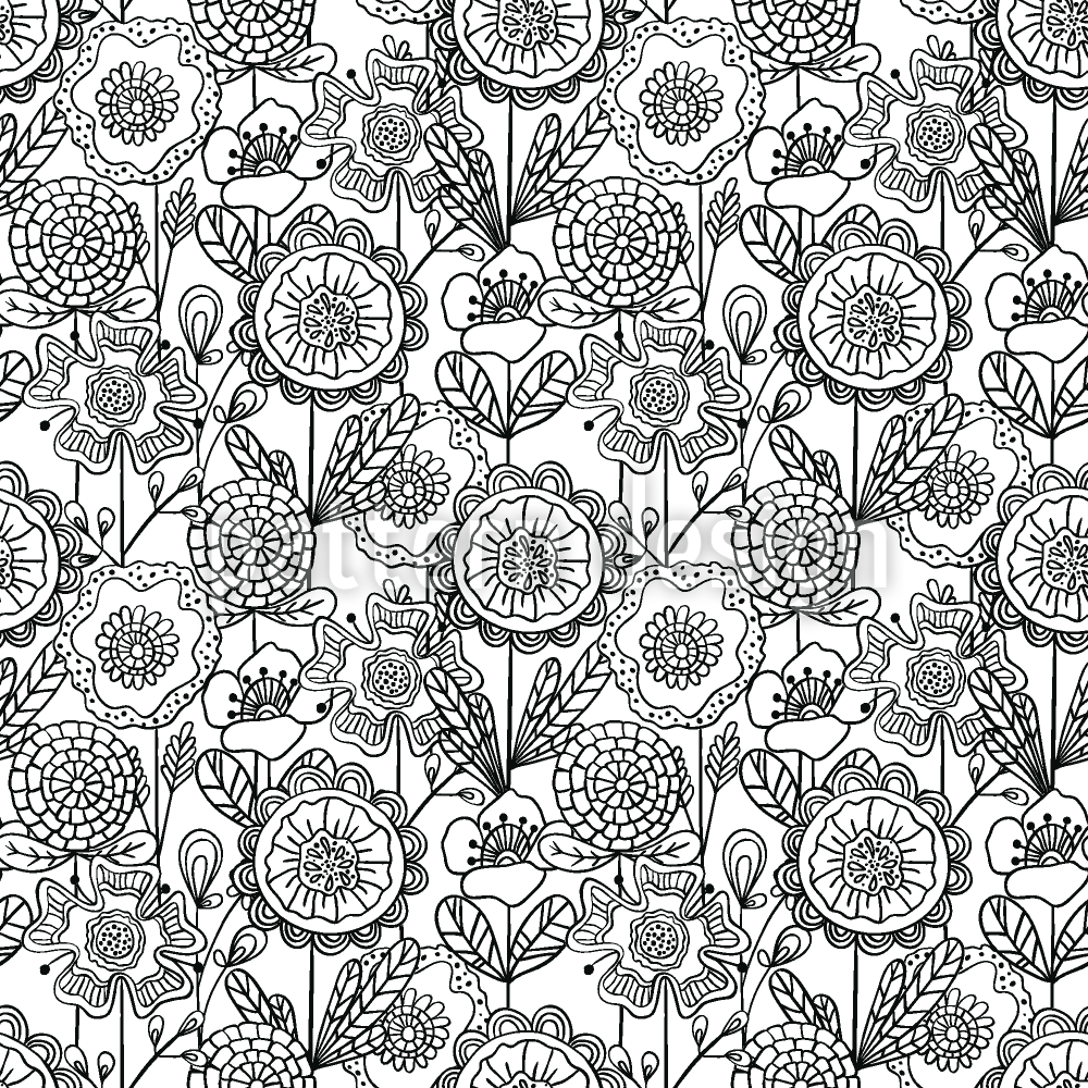 | Beskrivning | Monokromt blommönster med handritade klotter blommor. | ||