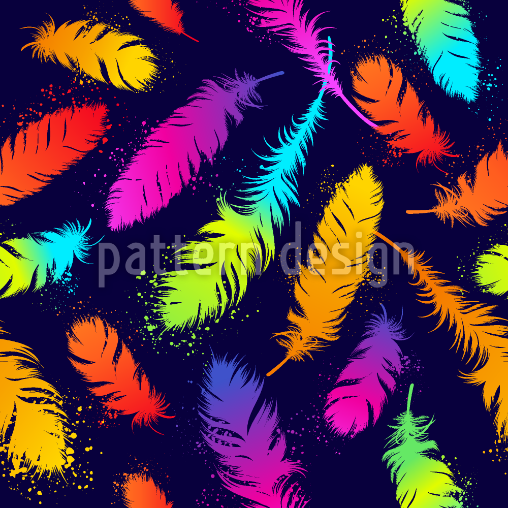 | Beskrivning | Sömlöst mönster med färgglada neonfjädrar på mörk bakgrund. | ||