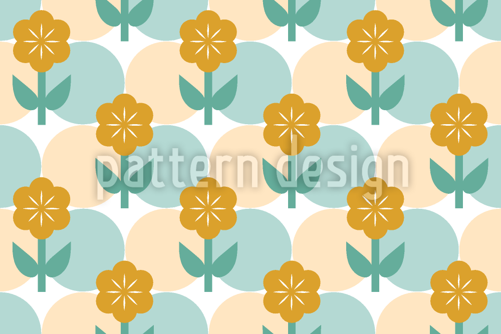 | Beskrivning | Modernt, enkelt och abstrakt blom- och prickmönster i mjuka färger inspirerade av 1970-talet. | ||