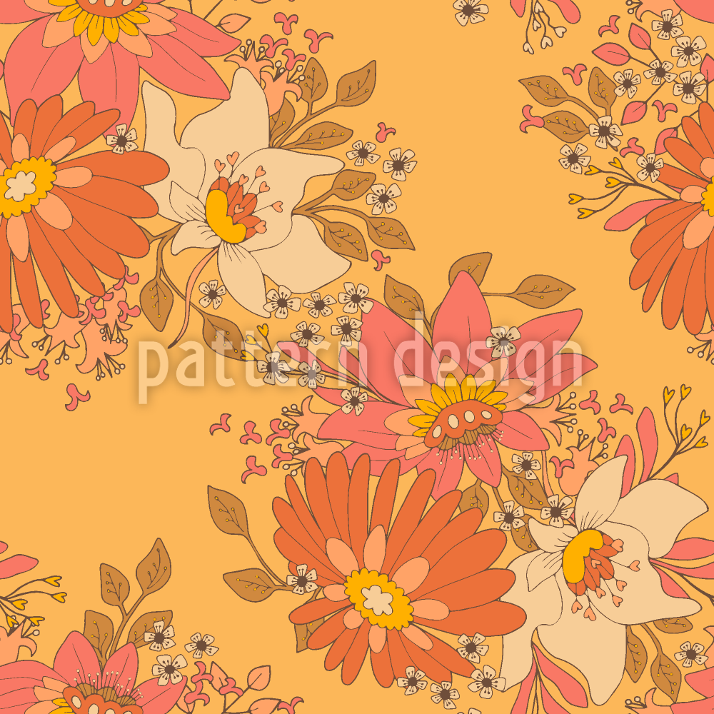 | Beskrivning | Ett djärvt blommönster i en fri flödesupprepning. | ||