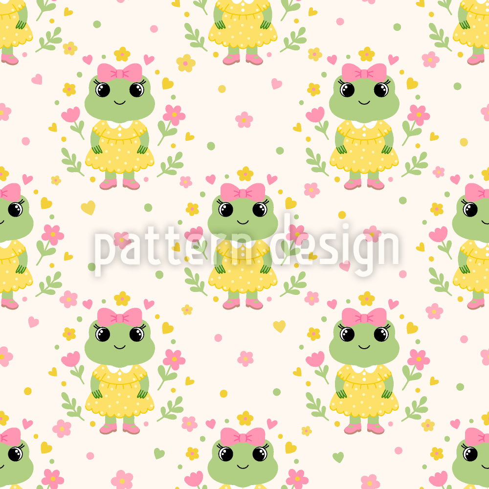 | Beskrivning | Kawaii-mönster med grodflicka omgiven av blommiga inslag. | ||