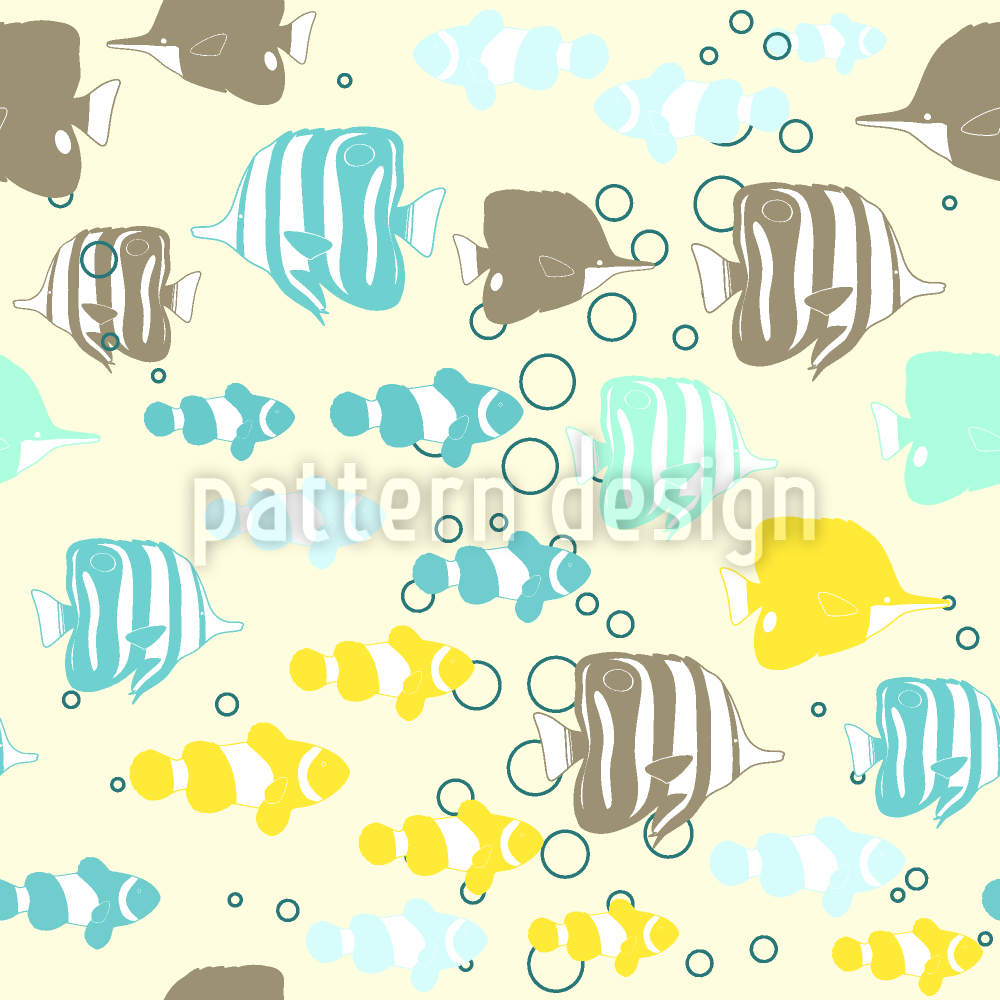 Resif Balıklar Dikişsiz Vektör Desen Tasarımı
