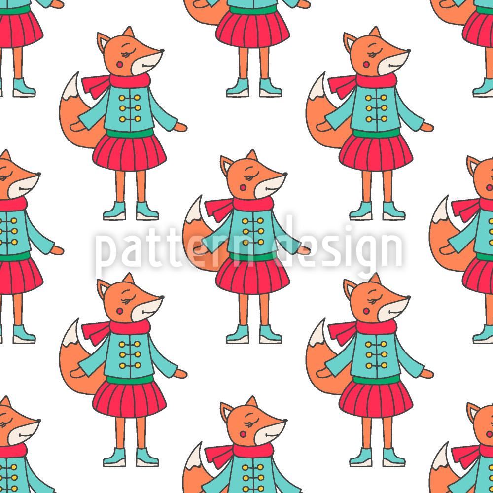 Kış Giysileri Tilki Dikişsiz Vektör Desen Tasarımı