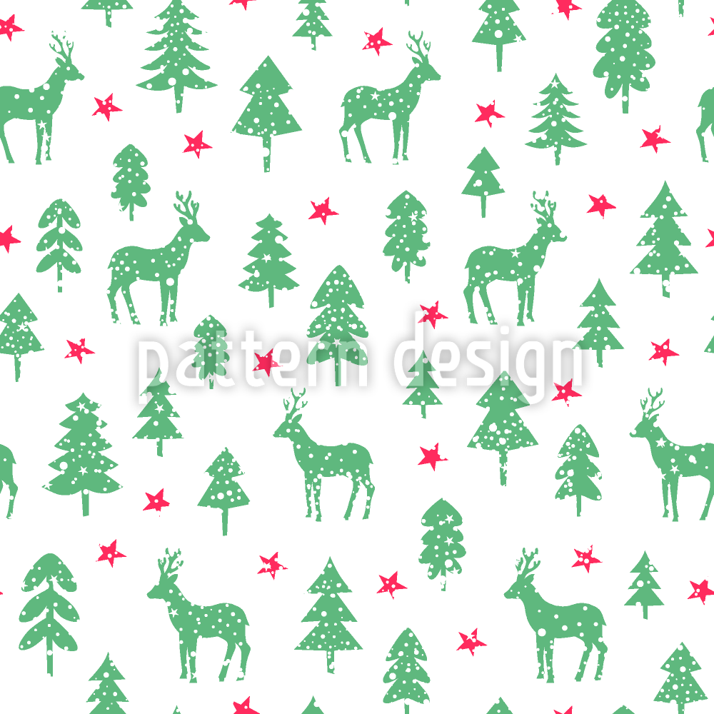 Bir Karlı Ormanda Geyik Dikişsiz Vektör Desen Tasarımı