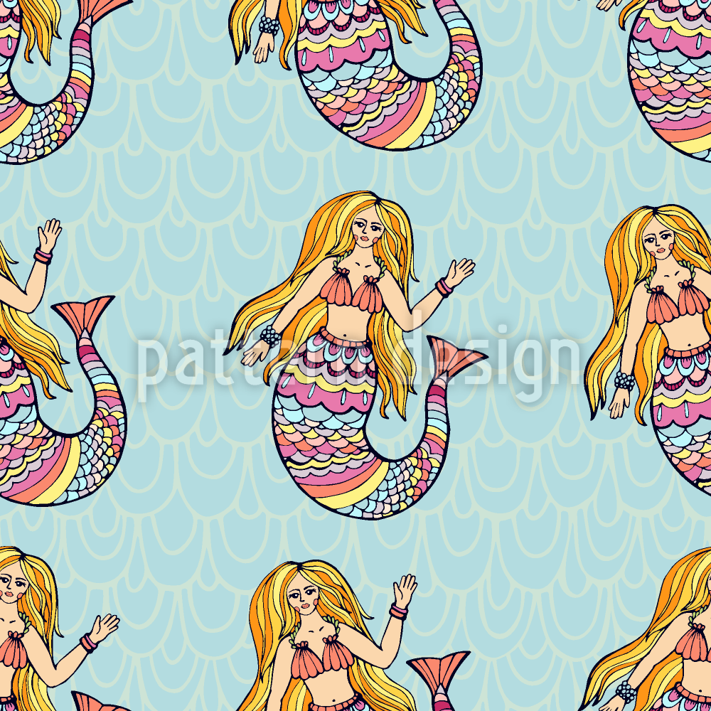 Güzel Denizkızları Dikişsiz Vektör Desen Tasarımı