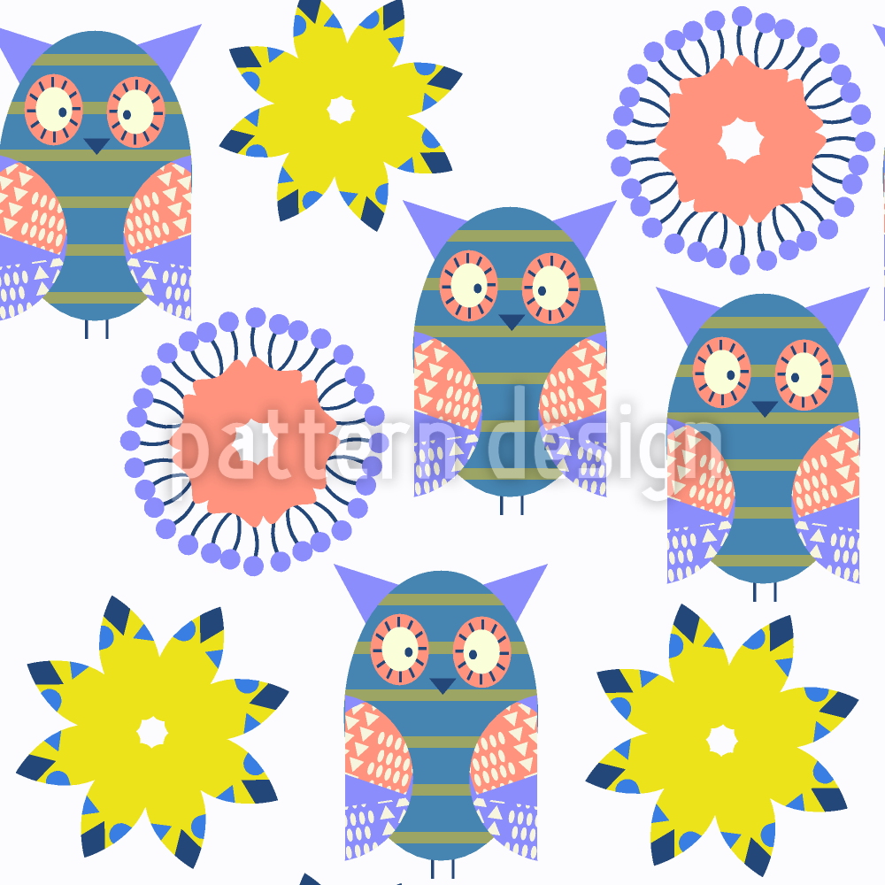Güneşli Baykuşlar Dikişsiz Vektör Desen Tasarımı