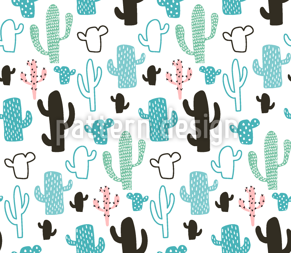 Mentol Kaktüs Dikişsiz Vektör Desen Tasarımı