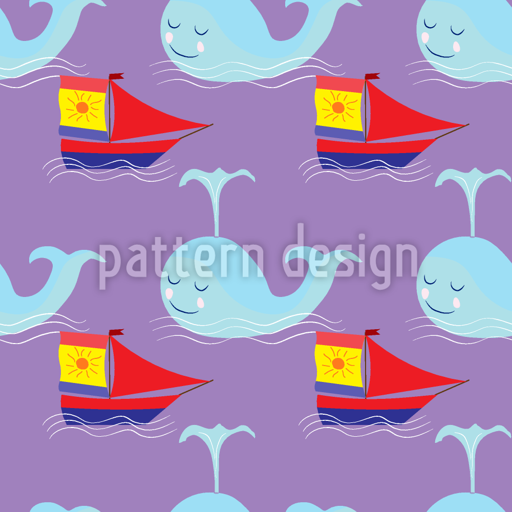 Yelken Ve Balina Dikişsiz Vektör Desen Tasarımı