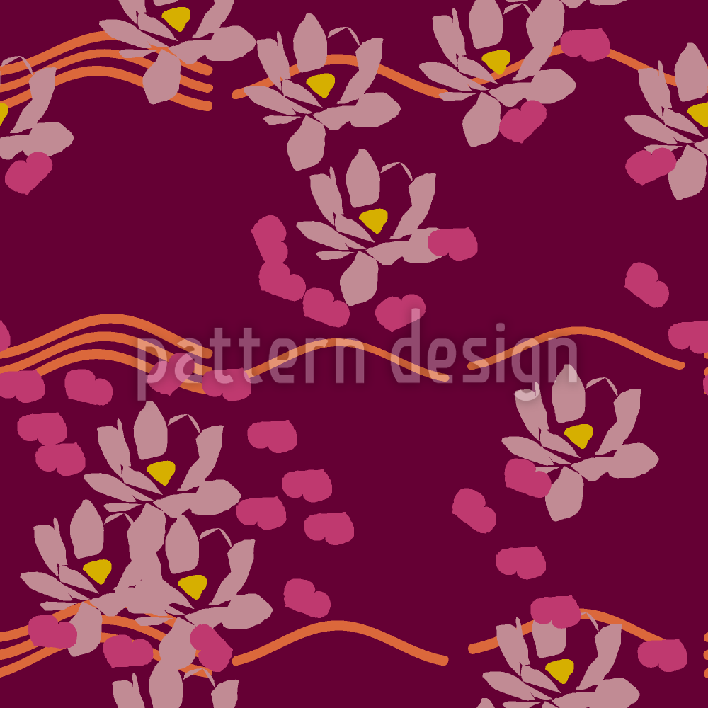 Lotus Liebe Bordo Dikişsiz Vektör Desen Tasarımı