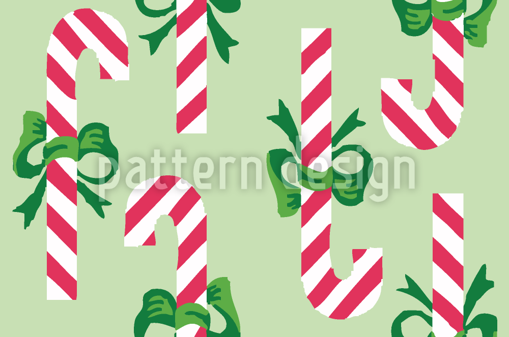 Şeker Kamışı Nane Yeşili Dikişsiz Vektör Desen Tasarımı