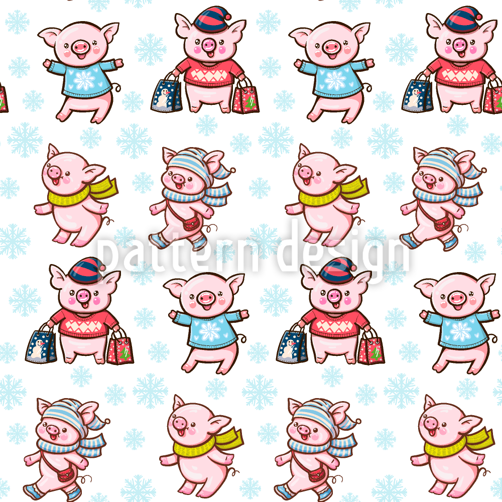 Noel Alışverişi At Piggies Dikişsiz Vektör Desen Tasarımı