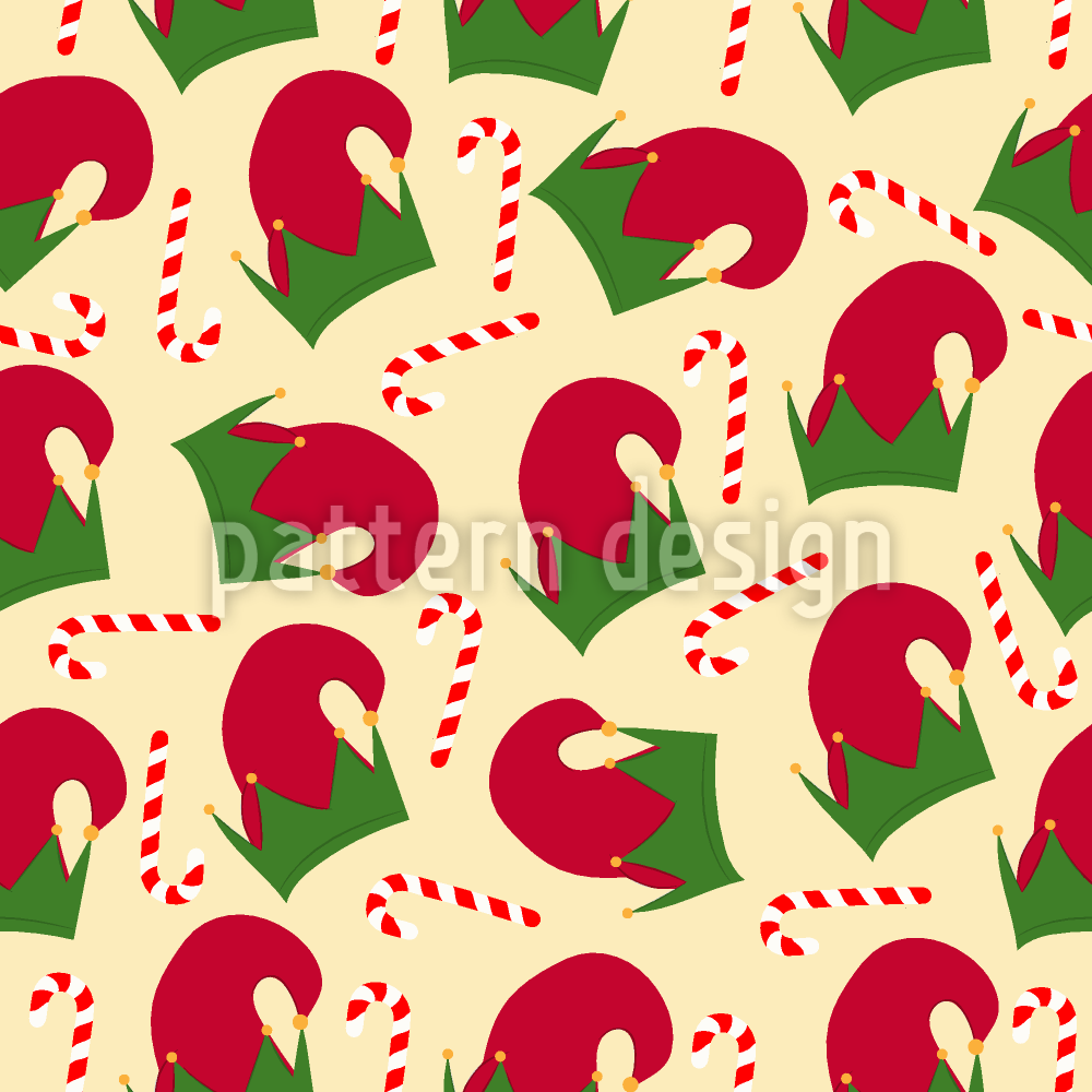 Elf Şapkaları Ve Şeker Baston Dikişsiz Vektör Desen Tasarımı