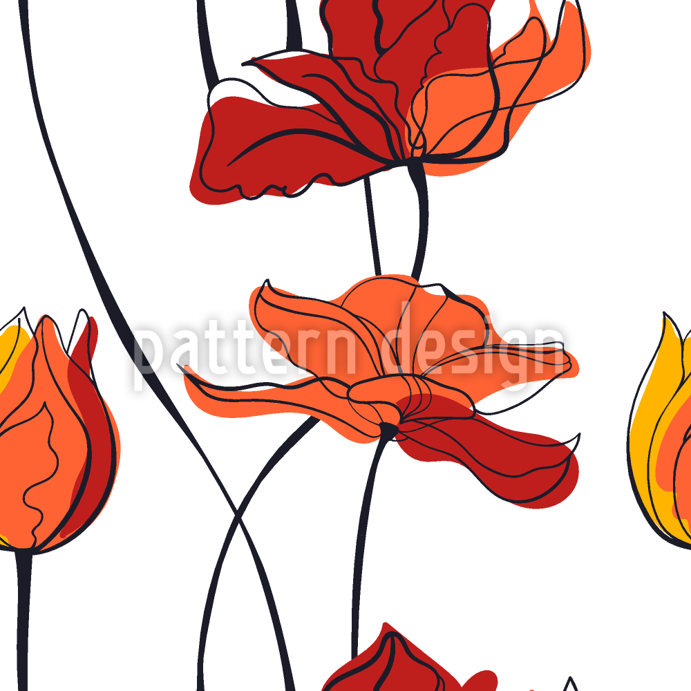 Gün Batımı Lale Alanı Dikişsiz Vektör Desen Tasarımı