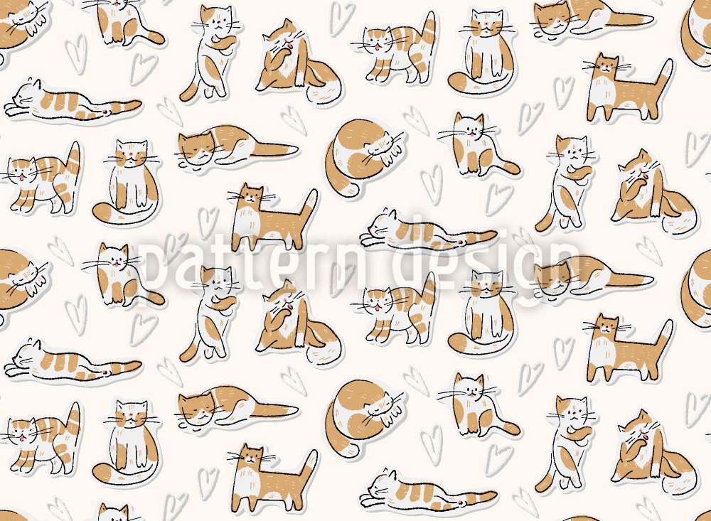 Sevimli Karikatür Kedi Dikişsiz Vektör Desen Tasarımı
