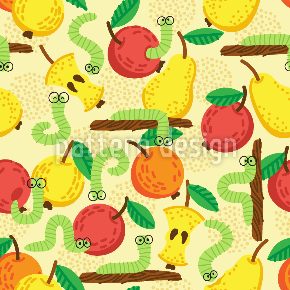 | Açıklama | Olgun elma ve armut yeme bir karikatür tarzı komik tırtıllar ile bir vektör desen. | ||